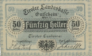 Billet de 1920 émis par le Land du Tyrol (voir aussi 20 heller)