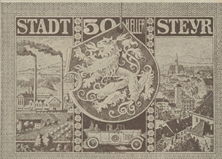 Billet de Steyr (voir aussi 1 heller) à la gloire de son industrie.