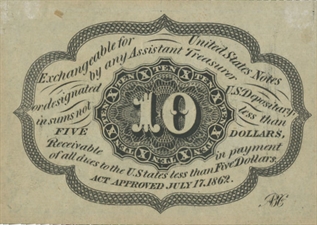 Après la Confédération, voici des billets émis par l'Union durant la guerre de sécession. Ces billets sont des "Fractionnal Currency" car ils sont des fractions du dollar.