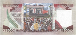 Ce billet représente le libérateur Jose Artigas (1764-1850) ainsi que des navires à voiles.