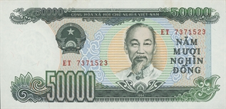 On reconnait sur ces deux billets le portrait d'Ho Chi Minh.