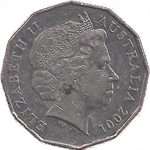 Cette monnaie représente un arborigène ainsi que le portrait jeune de la reine.