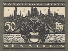 Outre la vue de Münster en 1570, on reconnait le tribunal de Schmisinger.
