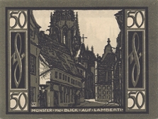 Ici on reconnait une rue de la vieille ville et la cathédrale St Lamberti.